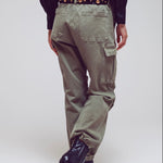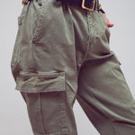 Cargo Pants with Tassel Ends in Military Green