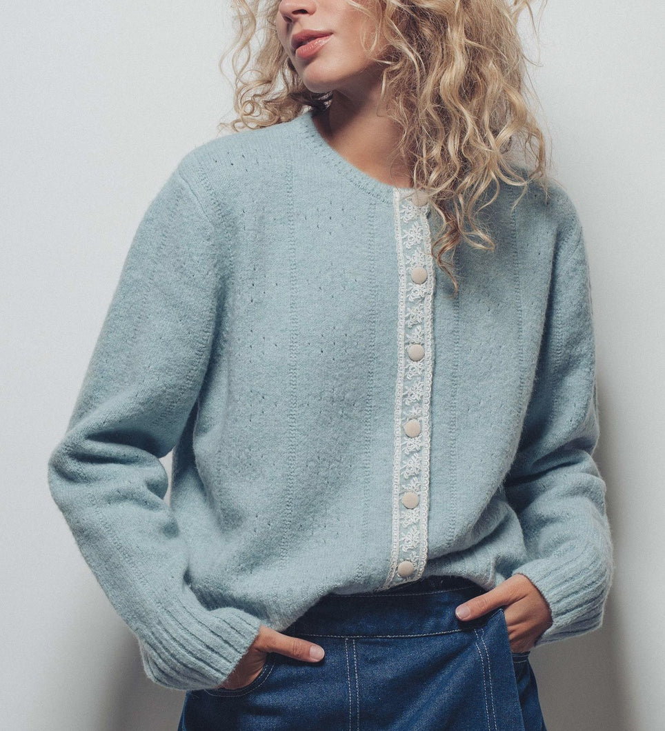 Lace Trim Wool Blend Cardigan