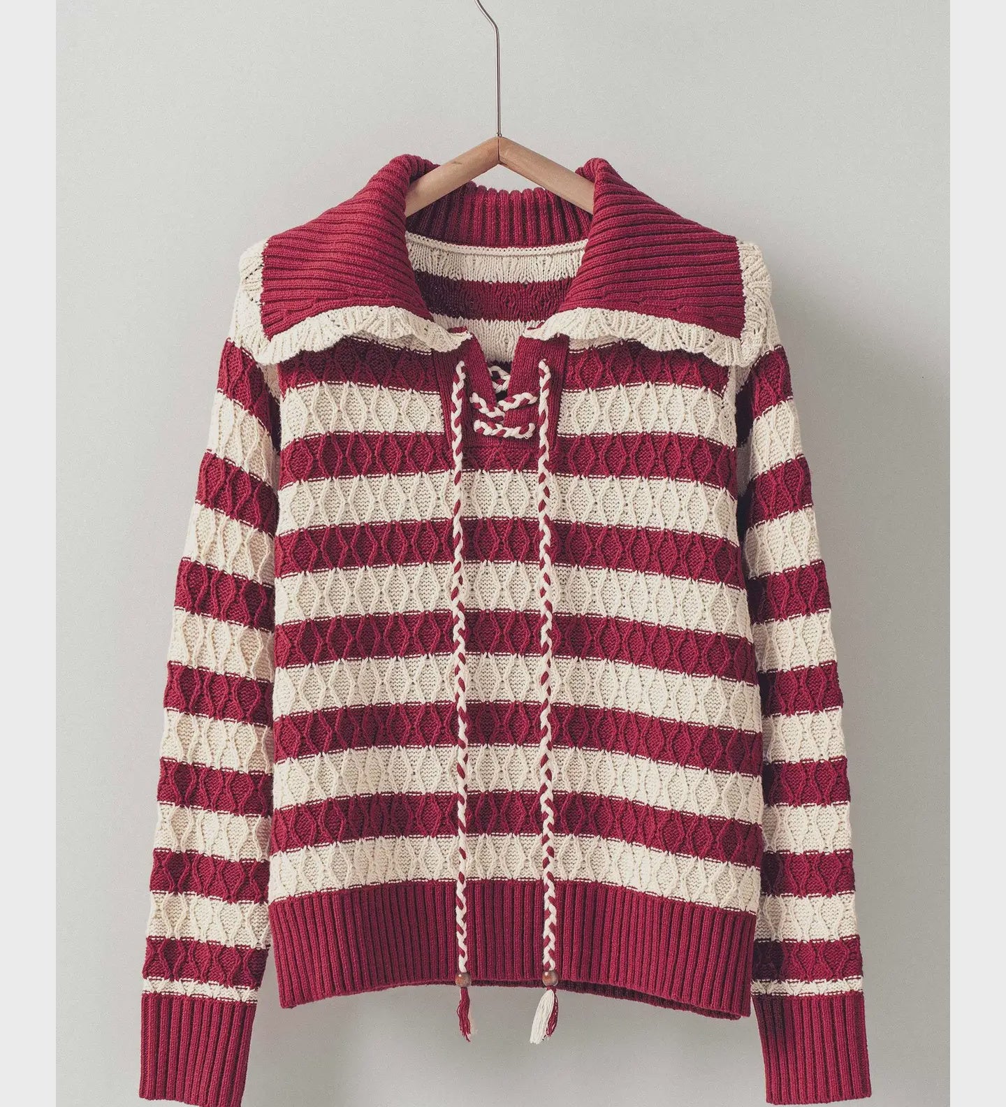 Lace-Up Cable Striped Sweater