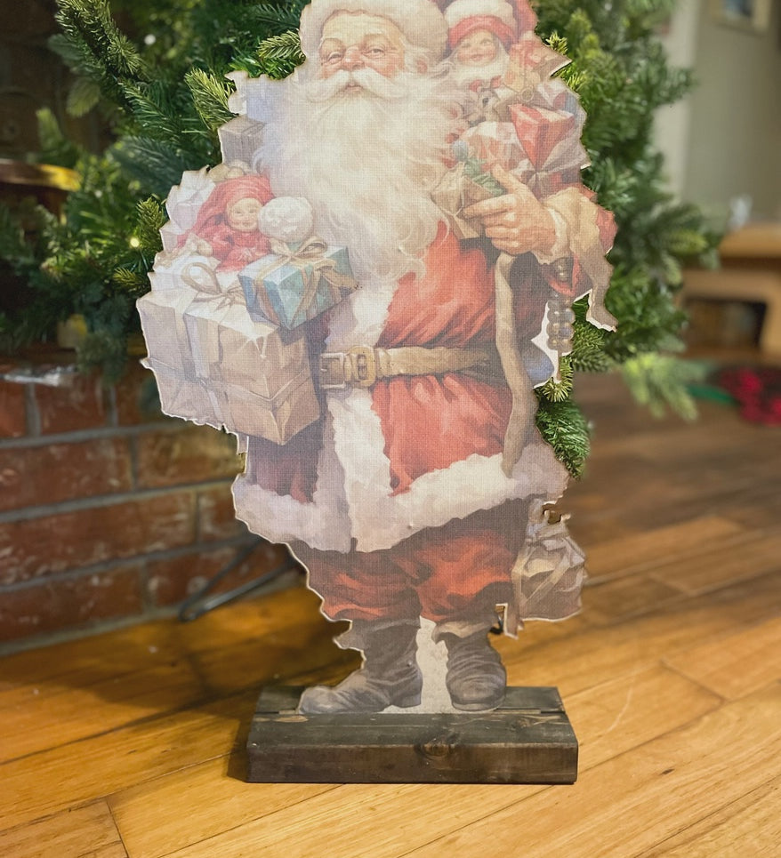 Santa w/sis.Tree Asst Cream/Gold 13in