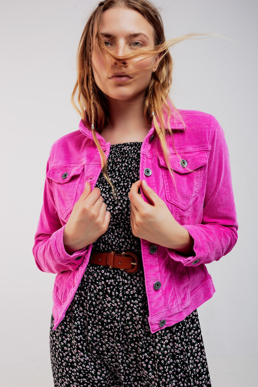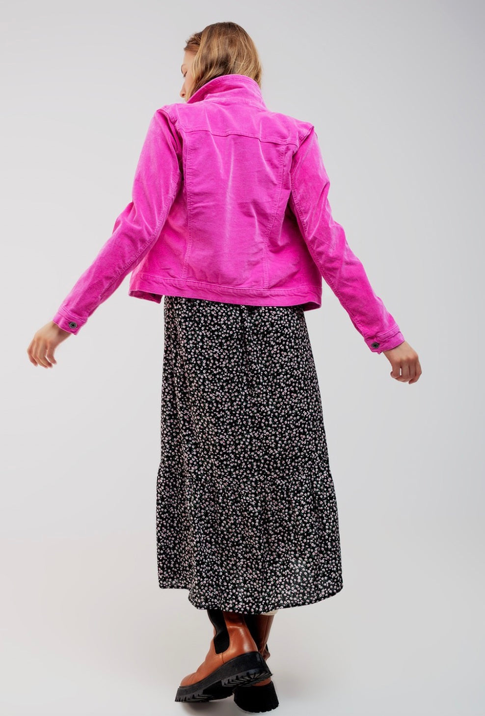 We are obsessed with this new fuchsia pink jacket in soft, lightweight corduroy! Wear this fun & fabulous jacket to layer over a tank or tee and pair with a wide leg denim or a crisp white trouser or short. Either way, this fun jacet is all about elevating your look in cool corduroy!