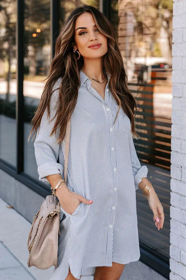 Perfect for everyday commuting, our Analia Dolman Sleeve Stripe Shirt Collar Oversize Dress has a loose, comfortable fit that will keep you cozy throughout the day. It's time to take the shirt dress up a notch. Same structured, classy look, but we've made it with a silky soft fabric that drapes and soothes, as it should.