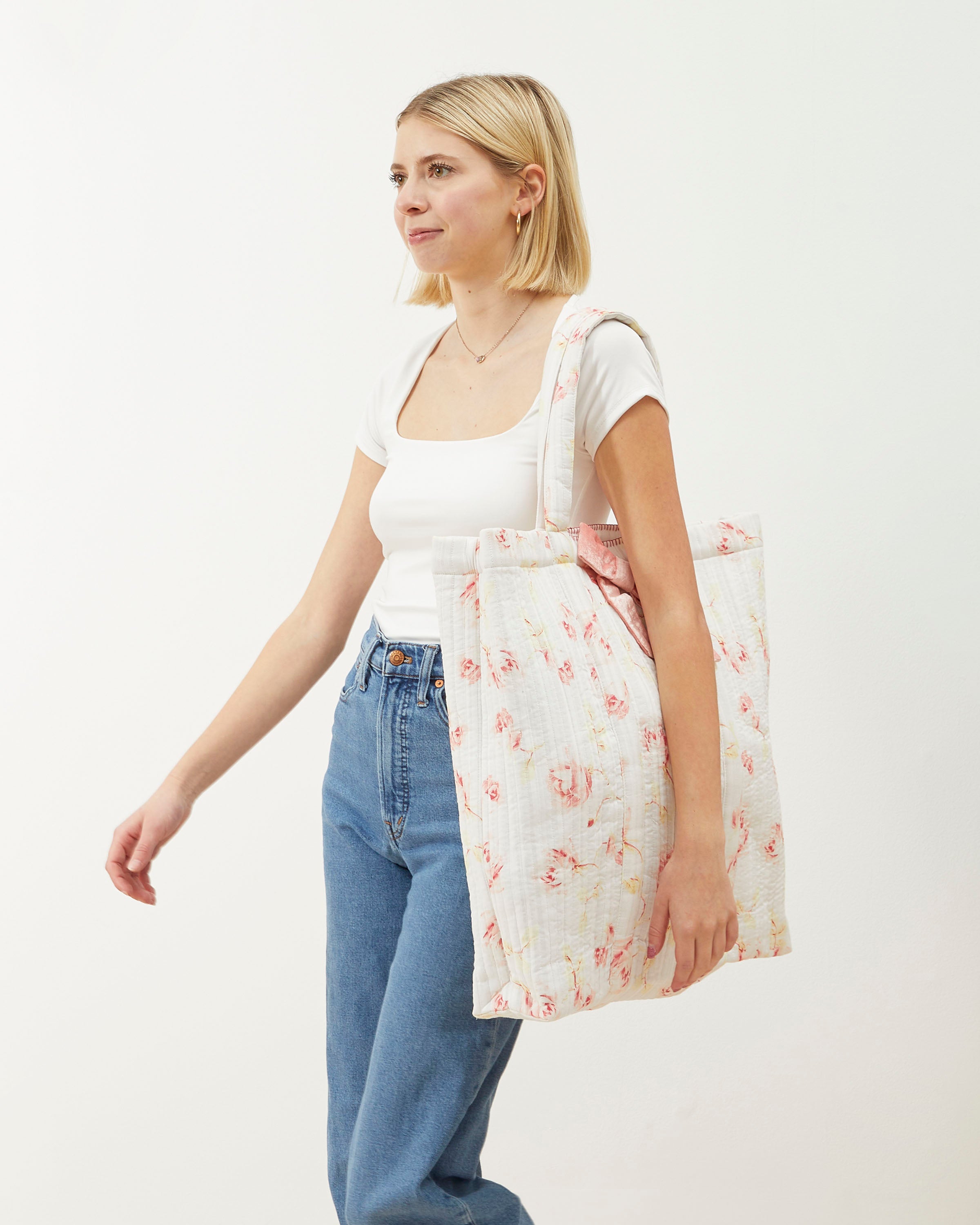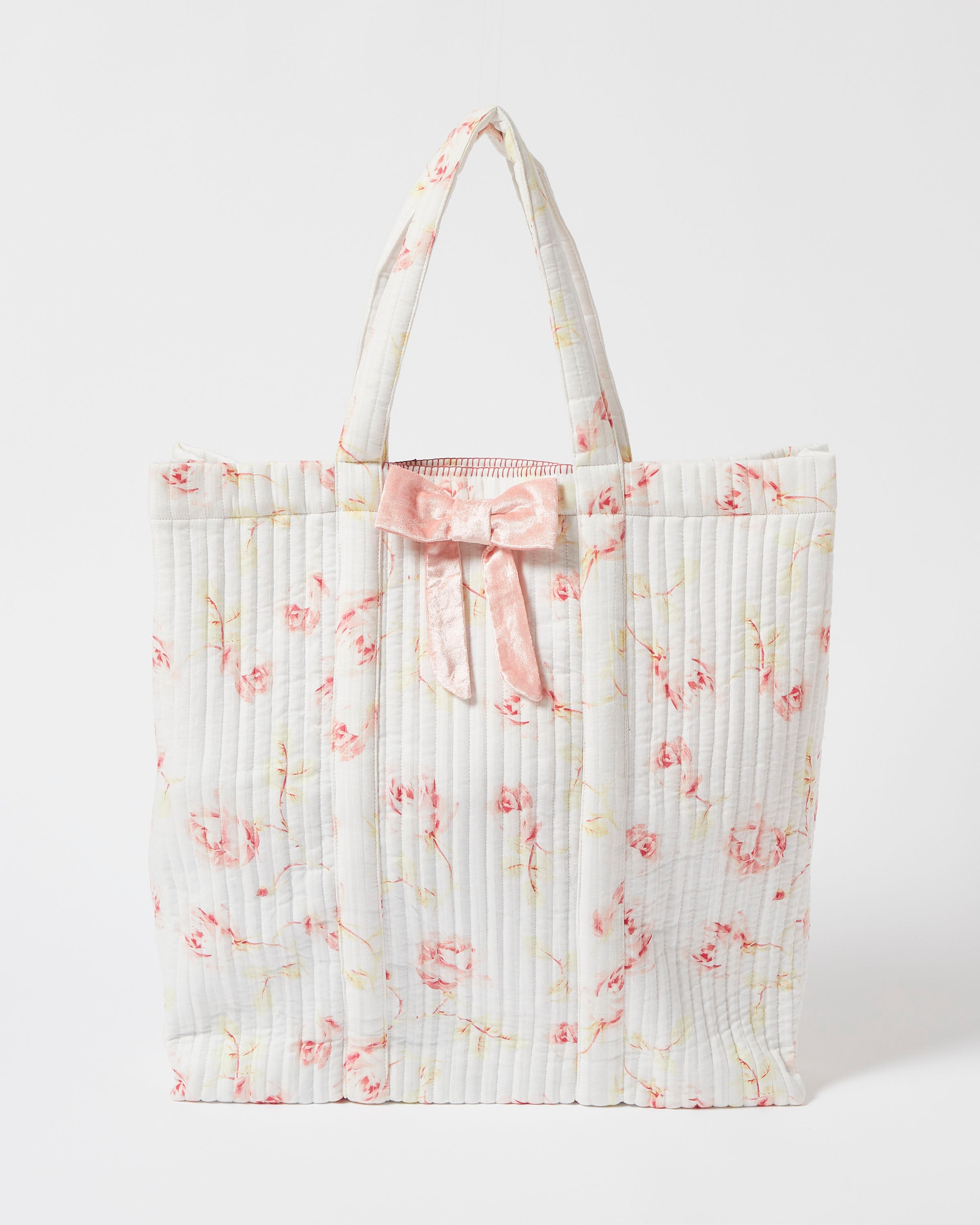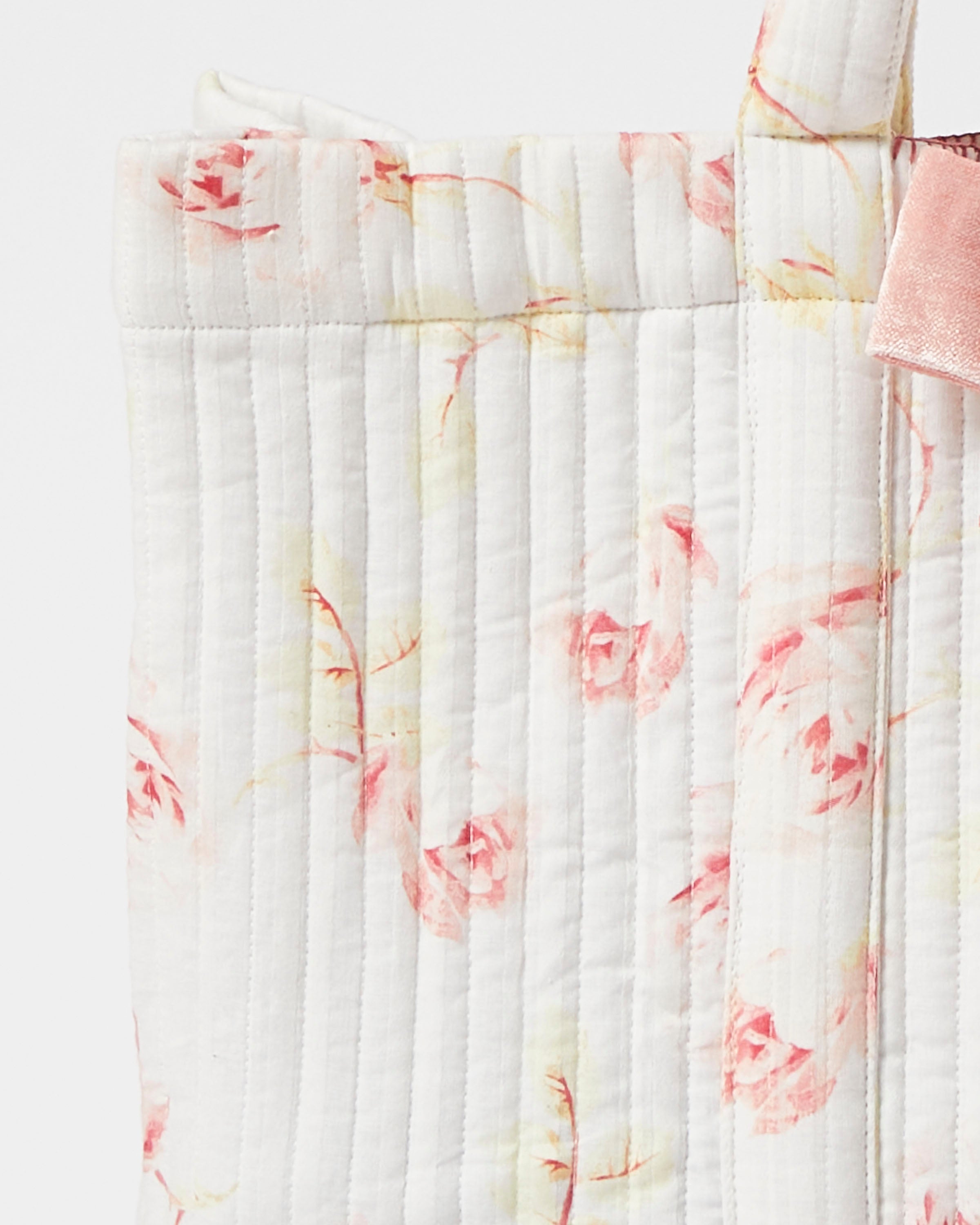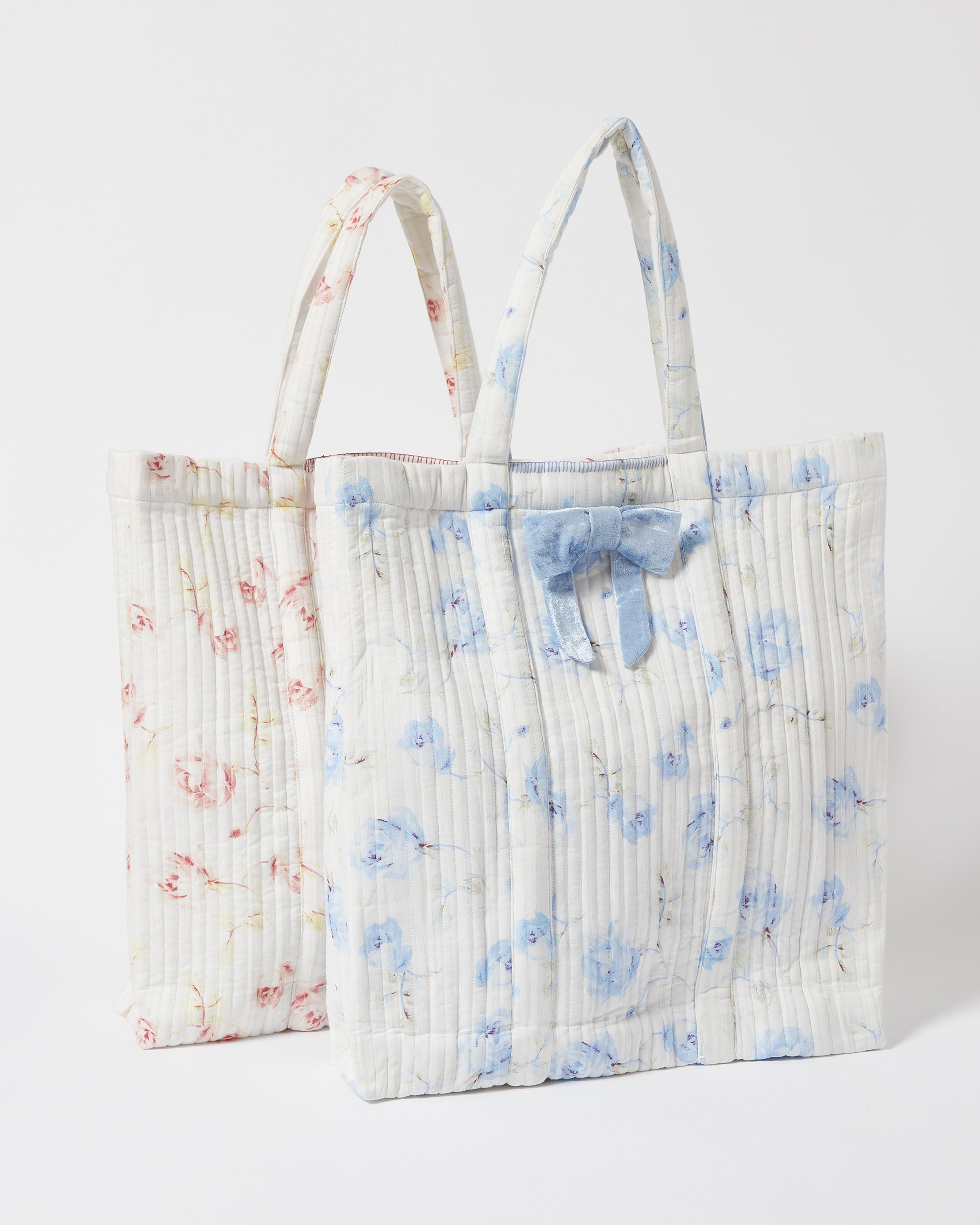Forever Florals Tote Bag designed and made to hold all the market finds to carry all that needs to go wherever you go and so much more! Use it as a beach bag, diaper bag, or a carry on for all your adventures. About the Repairing the Heart Collection: Recycled remnants of eyelet cotton in soft, vintage-like color palettes with floral print are used to create the collection, Repairing the Heart. Each Bag includes magnetic closure and an inside pocket and features an accent velvet bow to be added to the bag or to stand on its own. Make it your own.
