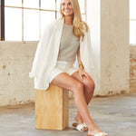 The beauty of the blazer: its simple, relaxed elegance and elevates the standard. This crisp white blazer can be worn with relaxed pieces to clean tailored lines. Detailed with a chest pocket, two jetted pockets with flaps, padded shoulder, and finished with clean lined interior; there’s no question the blazer's cool versatility is the power move.