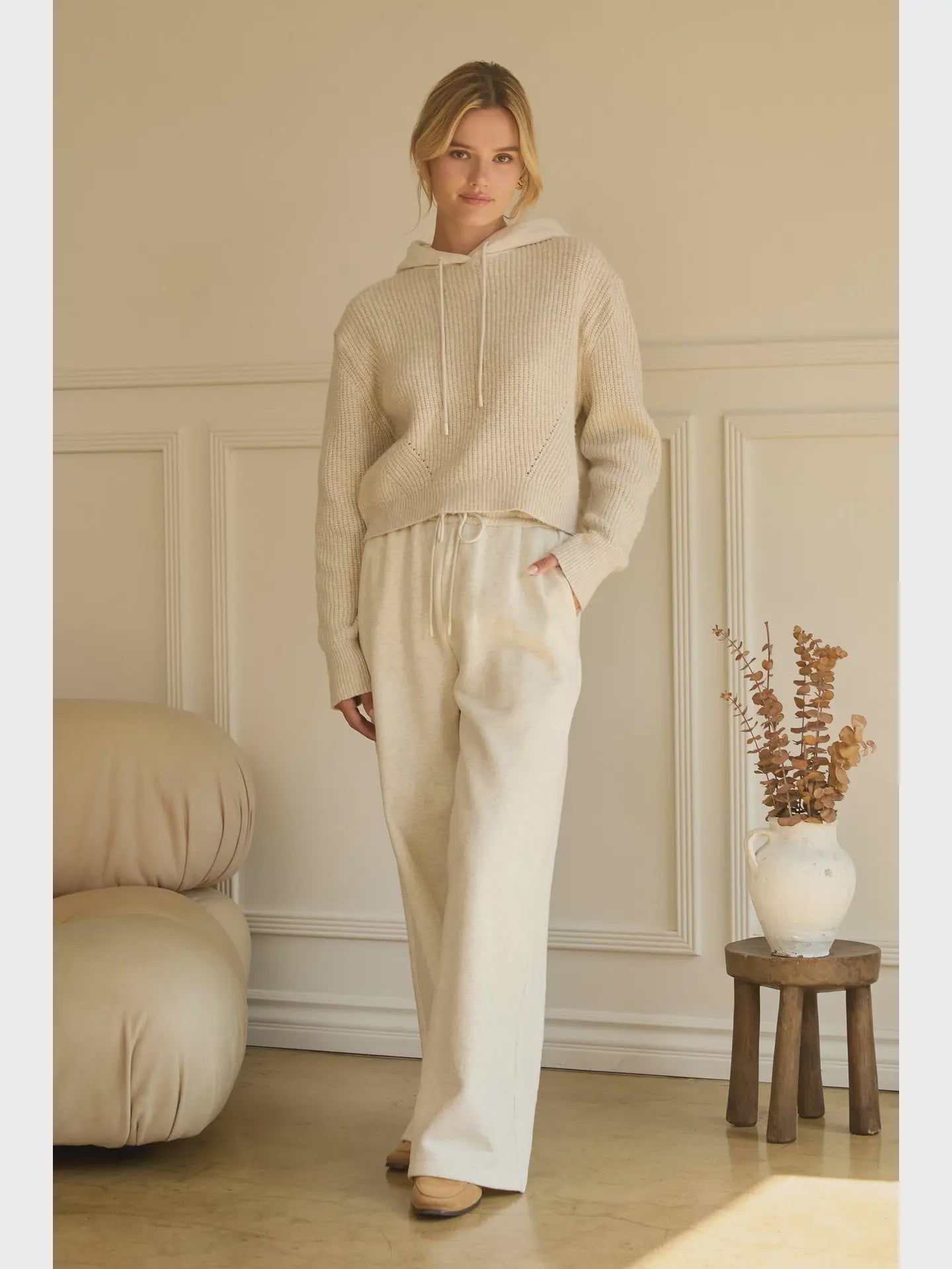 Effortlessly stylish and endlessly cozy, these elastic waist pull-on sweatpants are your winter wardrobe essential. Designed for comfort and ease, they feature a relaxed fit, ultra-soft fabric, and wide-leg silhouette—perfect for lounging at home, airport travel days, or casual winter outings. Pair with your favorite hoodie or sweater for an elevated yet comfortable look. These neutral-tone lounge pants are ideal for gifting season—whether for your favorite traveler, work-from-home pro, or your own cozy days. A winter must-have they’ll actually live in.