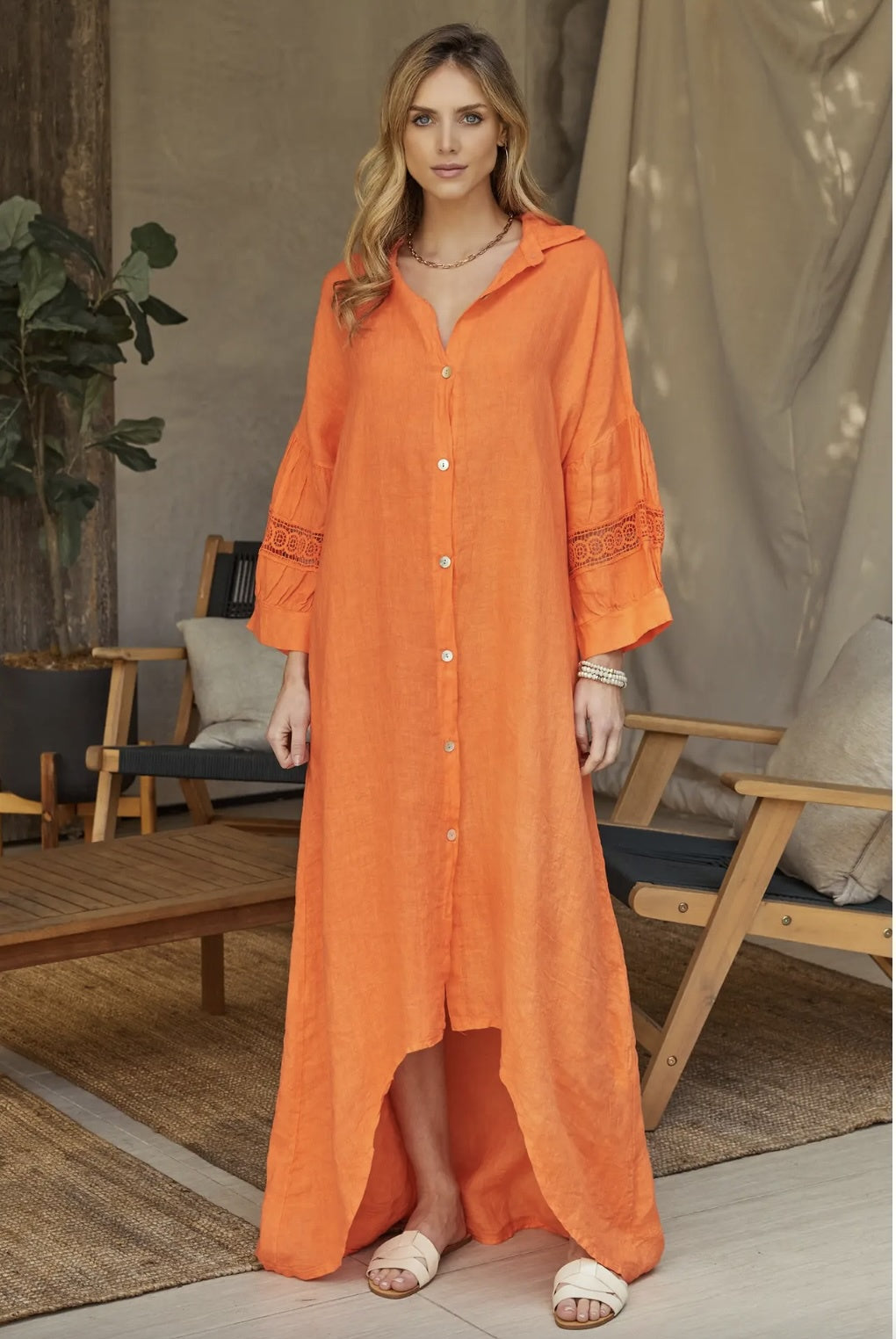 Easy, breezy and super simple, the Linen Puffy Sleeve Maxi Dress is made for warm weather days. Think flowing soft linen with ample room for keeping cool. It would be hard pressed to find a summertime color or a dress for the heat we’d rather be wearing all summer long.