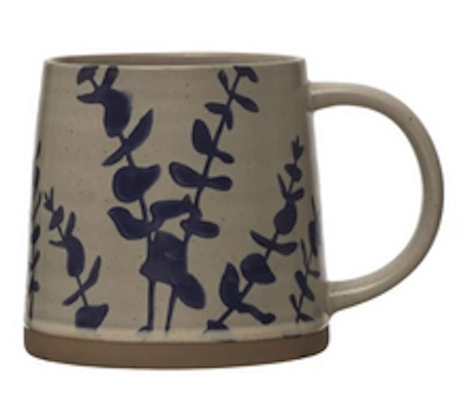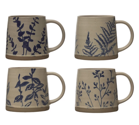 Hand-Stamped Stoneware Mug w/ Botanicals