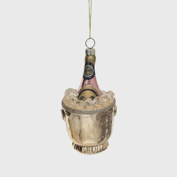 Pink Champagne Bottle in Glass Ice Bucket Ornament