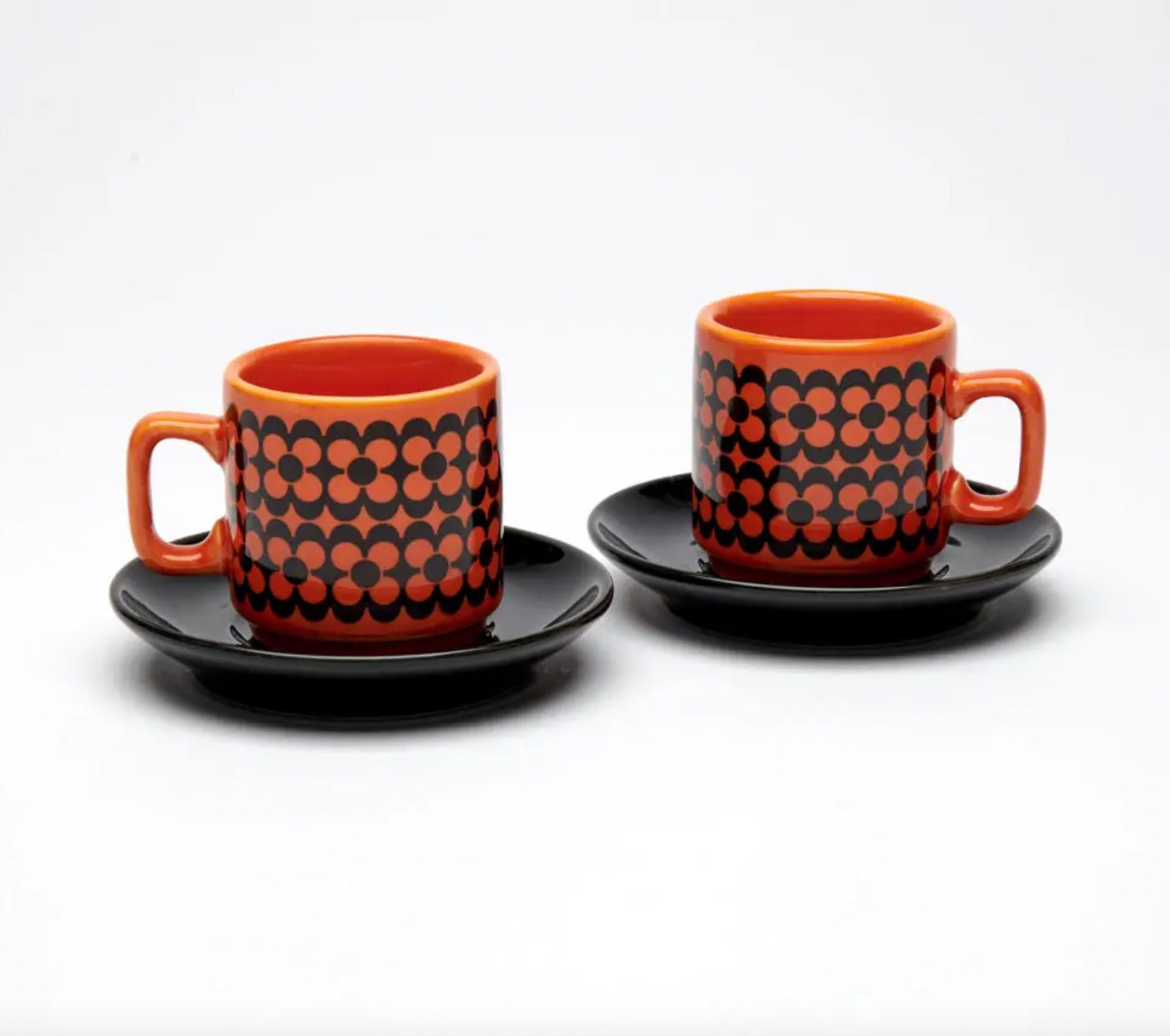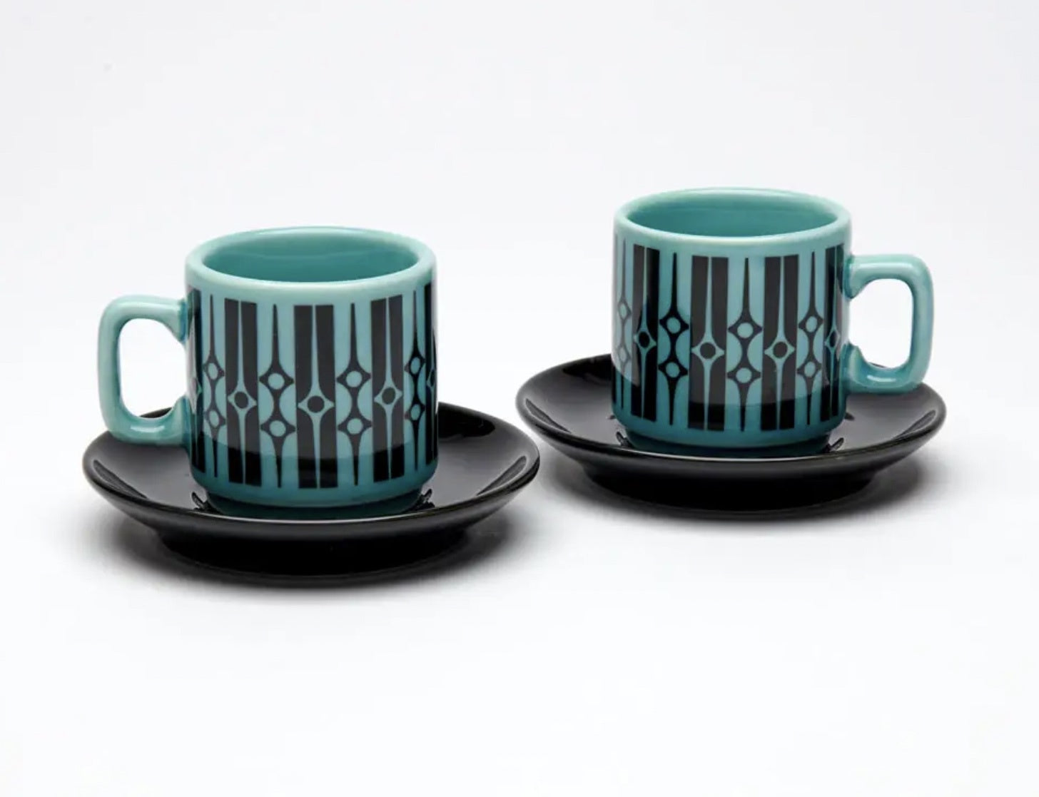 New ceramic moulds were created to make espresso cups and saucers, glazing them using authentic Hornsea colors of the period.