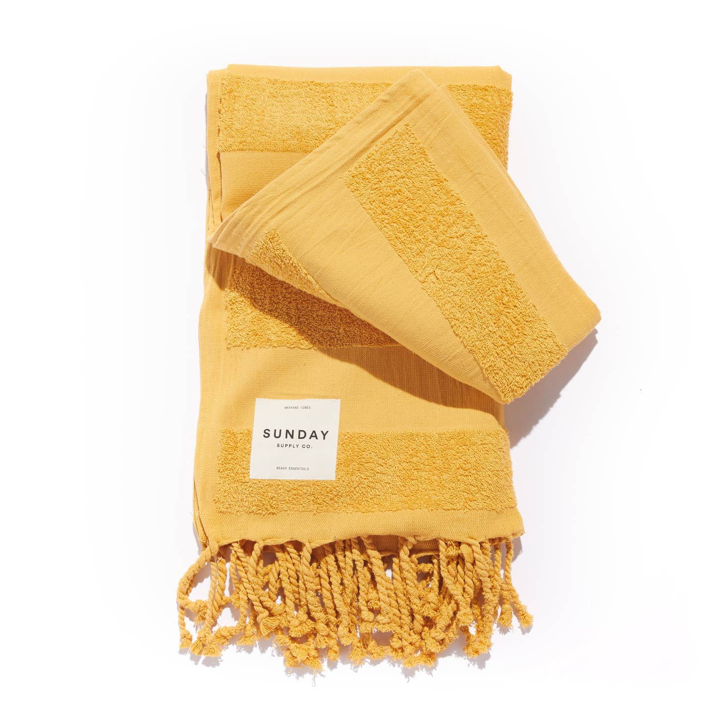 Crafted from 100% cotton, the Pacific Beach Towel is designed for lightweight convenience and effective drying—perfect for beach days, poolside lounging, or everyday use. Available in two sun-washed colorways: Pacific Blue, inspired by ocean waves, and Golden Yellow, a nod to warm, glowing shores. Wherever the sea meets the sand, this towel brings a touch of laid-back luxury to your routine. Slow down, set up by the shoreline, and take in the breeze.