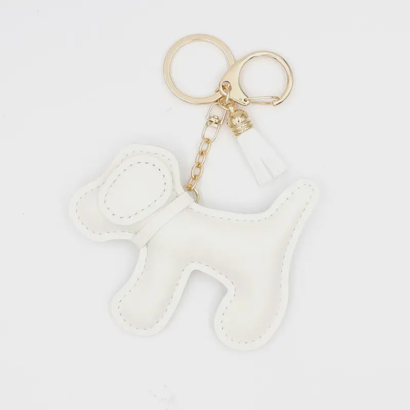 Chic and full of character, this vegan leather dog bag charm keychain lets your personality shine. Offered in brown, pink, and white—it's a stylish accent for any handbag with a playful, modern twist.