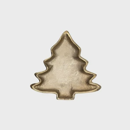 This cast aluminum dish, shaped like a tree and finished in elegant gold, Its refined design and metallic sheen make it an exquisite accent piece for serving or display, adding a touch of sophistication and festive allure to your tabletop.
