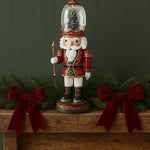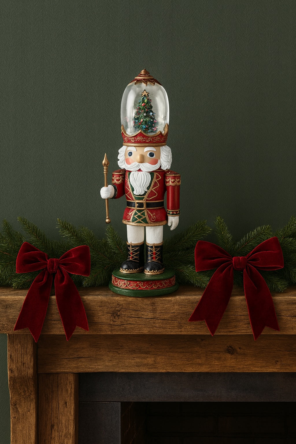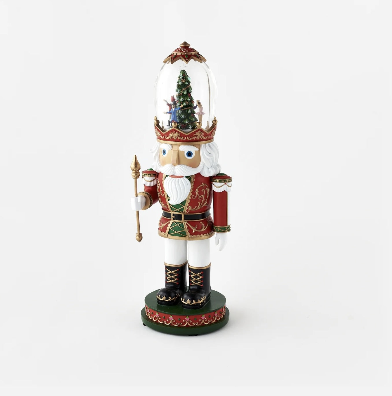 Bring timeless Christmas charm to your home with this Nutcracker featuring a lighted, revolving dome scene. Classic holiday hues and enchanting movement make it a magical statement piece—perfect for mantels, centerpieces, or festive tabletops. With its glowing display and detailed craftsmanship, this nutcracker adds warmth, wonder, and tradition to any holiday setting. A beautiful keepsake that transforms your décor into a storybook-worthy scene.