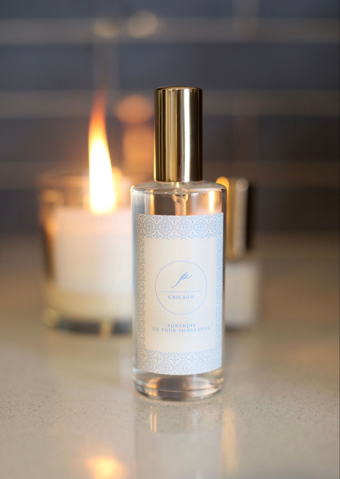 Sunshine on Your Shoulders Room Spray arrives in a glass vessel