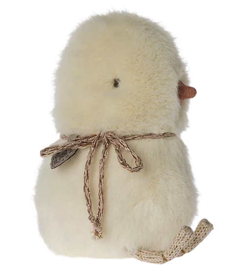 A small plush toy which is perfect for a tiny hand. The mini sized chicken has the sweetest look and a very soft hand feel. The small legs are made of knitted string with golden effect.