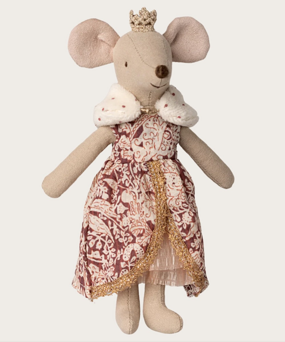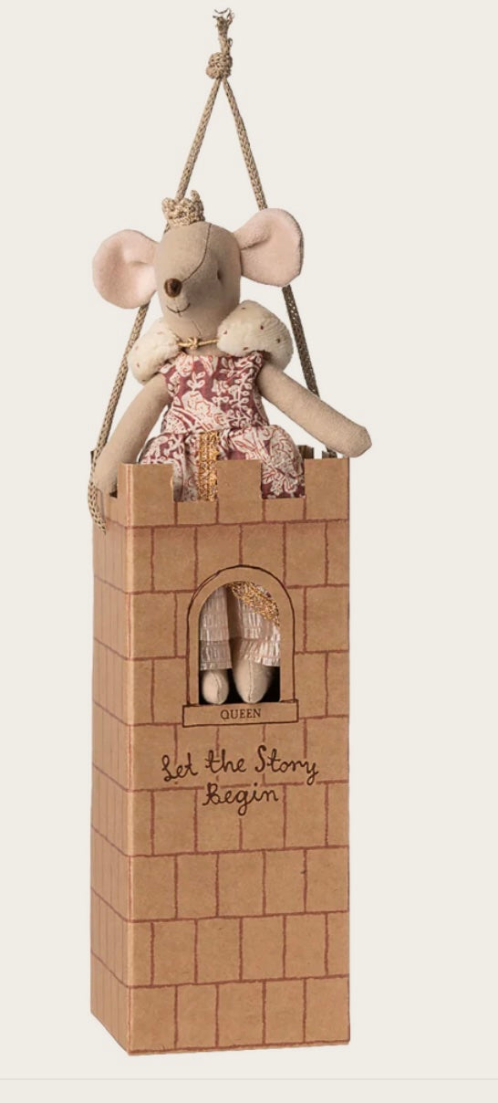 The Queen mouse in size Mum is ready to be a hostess in her Castle. She wears a beautiful royal dress and crown, and fits perfectly into the Castle Hall.