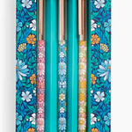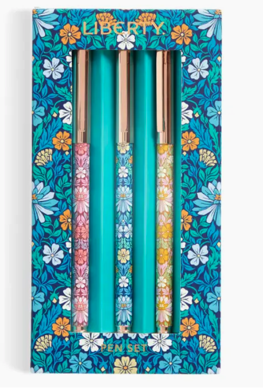 EVERYDAY PEN SET – The Liberty Moon Flower Everyday Pen Set is the perfect way to write in style. The Pen Set includes 3 ballpoint pens, each featuring the famous flower artwork from Liberty London. The flora filled designs are printed on metal barrels and are complimented by their metallic gold caps. The Moon Flowers pen set will add a touch of beauty and floral elegance to your writing.