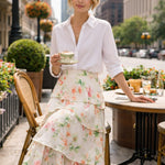 The Bloom & Grace Floral Tiered Maxi Skirt is a timeless spring staple designed for effortless, this spring/summer season's always-right skirt. Featuring soft pastel florals and flowing tiered layers, this flattering maxi skirt moves beautifully and feels feminine without trying too hard. Perfect for brunch, weddings, garden parties, vacations, church, showers, date nights, and everyday wear, it easily dresses up or down. Pair it with a crisp white blouse or a simple tee for versatile styling. A romantic floral maxi is ready-to-wear for at least 8 different occasions this season!
