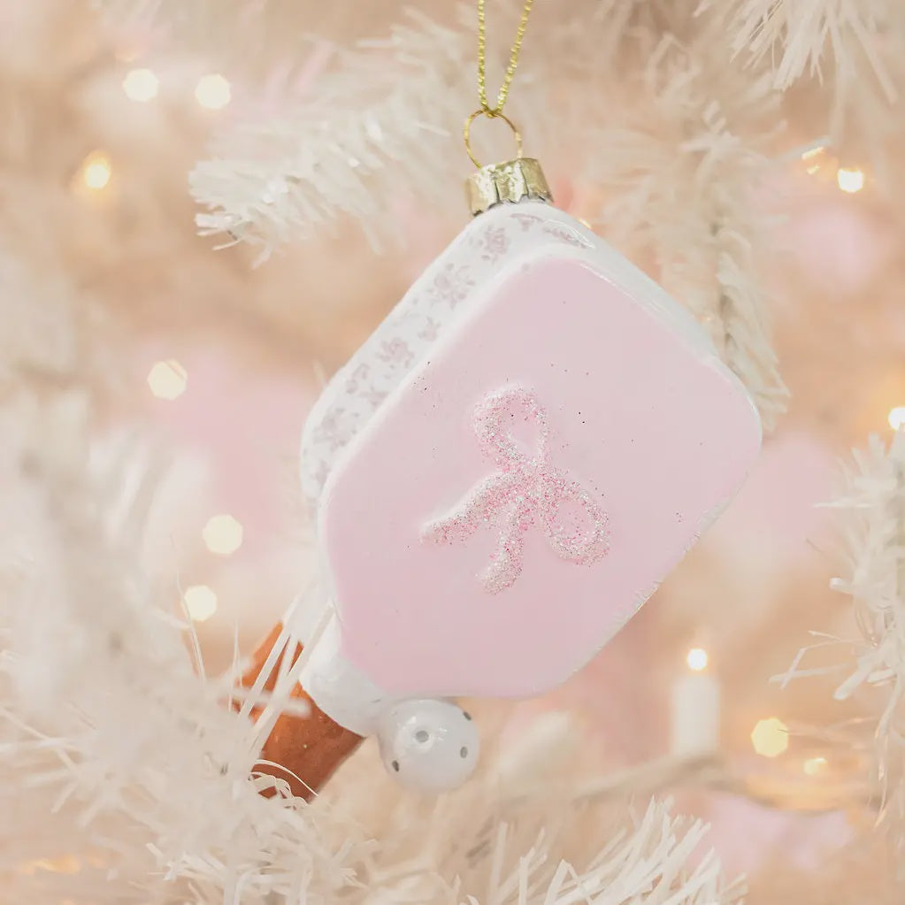 The holidays just got a little cuter. Bring some playful sparkle to your tree with our Pretty in Pinkleball Ornament! This pastel pink pickleball paddle is detailed with a glittery bow and includes a mini white ball, making it a must-have for court queens, paddle pals, and anyone obsessed with the trendiest sport of the season.