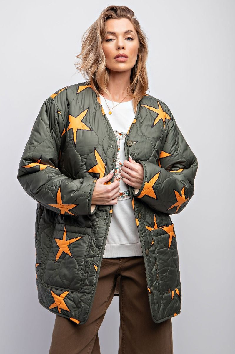 PRINTED AND EMBROIDERED REVERSIBLE SHERPA JACKET