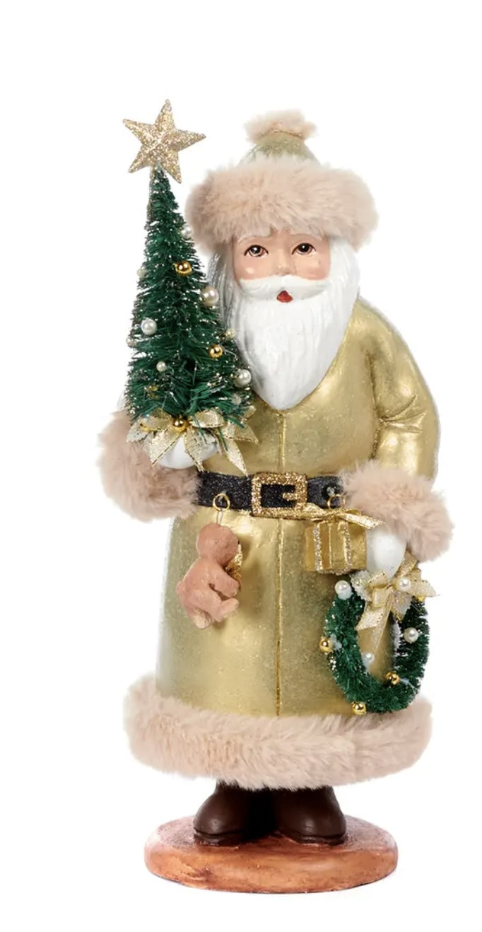 Santa w/sis.Tree Asst Cream/Gold 13in
