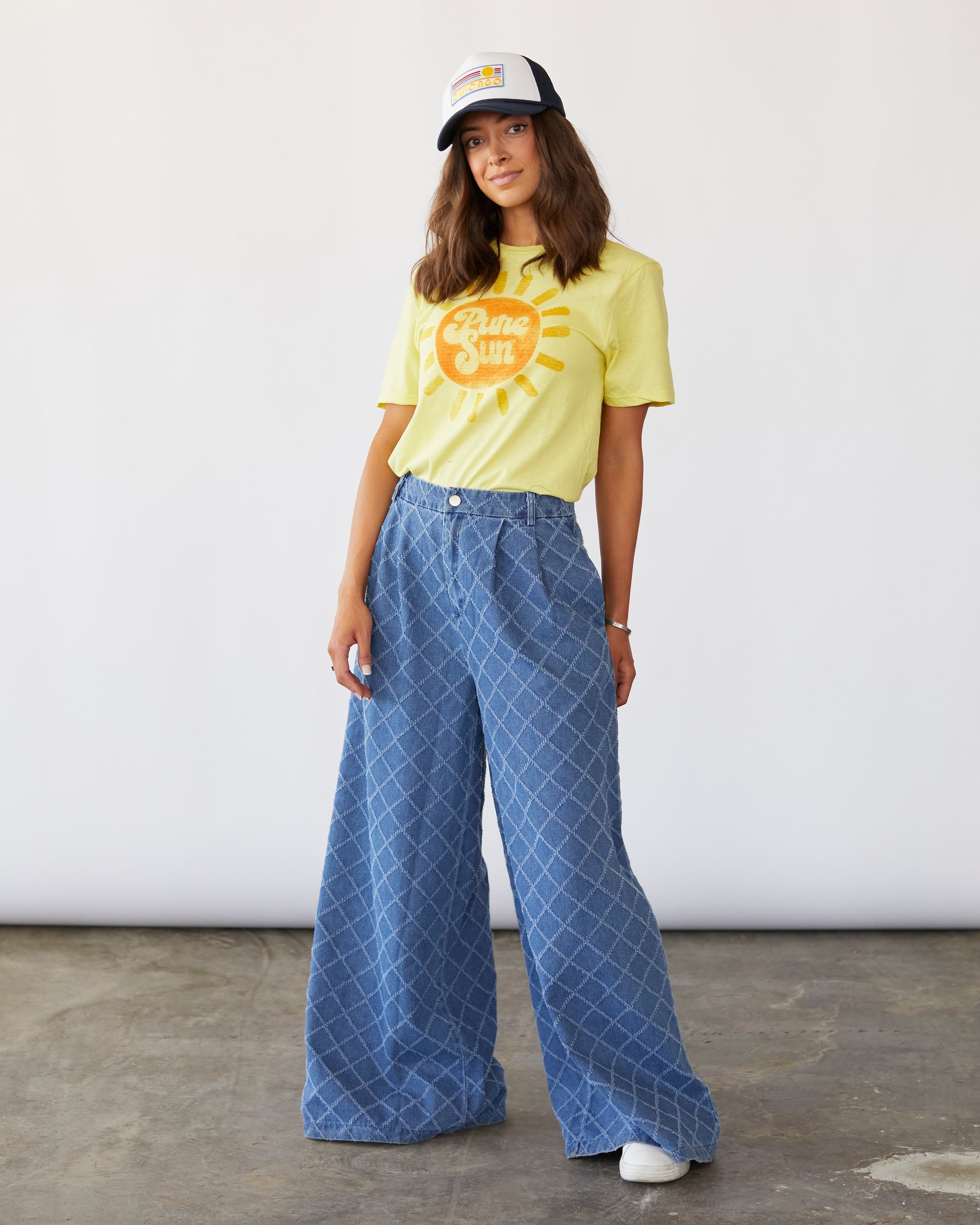 One of the most stylish denim to date - embellished denim! Embellished with texture- few pieces offer effortless style more than these pair textured, wide-leg jeans! Perfect for throwing on when you’re running out the door as well as moments when you don’t want to risk being overdressed but allows you to be safe in-style! Featuring a soft-washed denim with a pleated front, side pockets and a wide leg! We’re all about this style statement.
