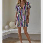 Woven Polyester Spandex Sequin V-Neck Short Sleeve Mini Dress With Lining